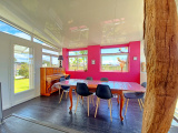 La maison principale offre une entrée accueillante, une véranda baignée de lumière, un salon/séjour chaleureux, une cuisine aménagée, deux chambres confortables, une salle d’eau contemporaine ainsi qu’un WC indépendant.